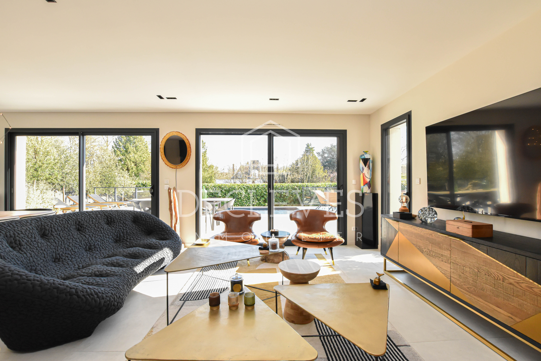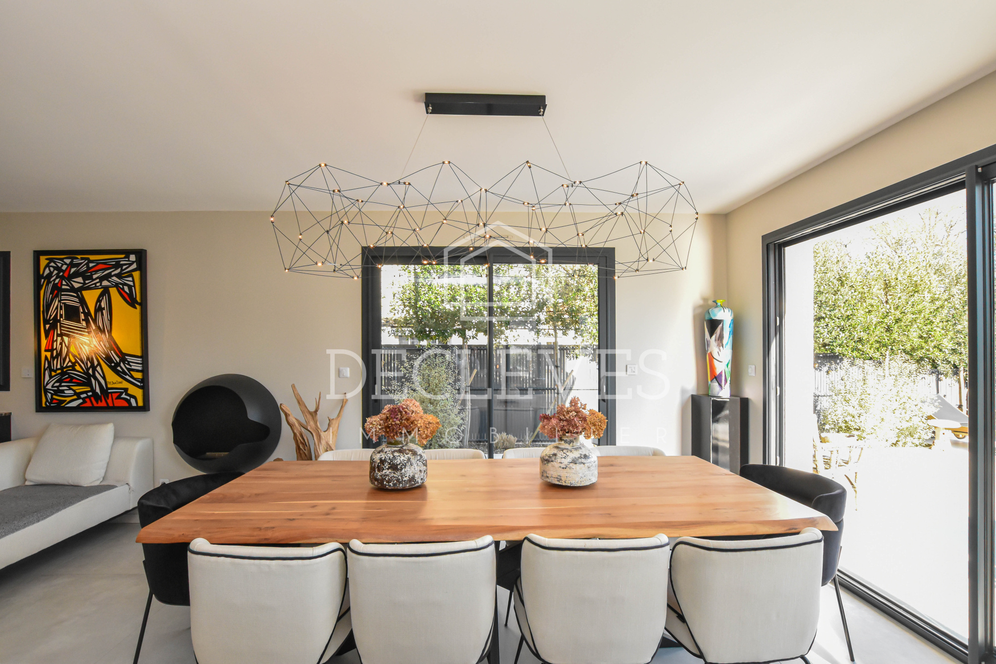 Dès l’entrée, la lumière naturelle s’impose comme une évidence. Les 234,91 m2 habitables, répartis sur deux niveaux, offrent des espaces parfaitement pensés, sublimés par des matériaux de grande qualité et une décoration raffinée.