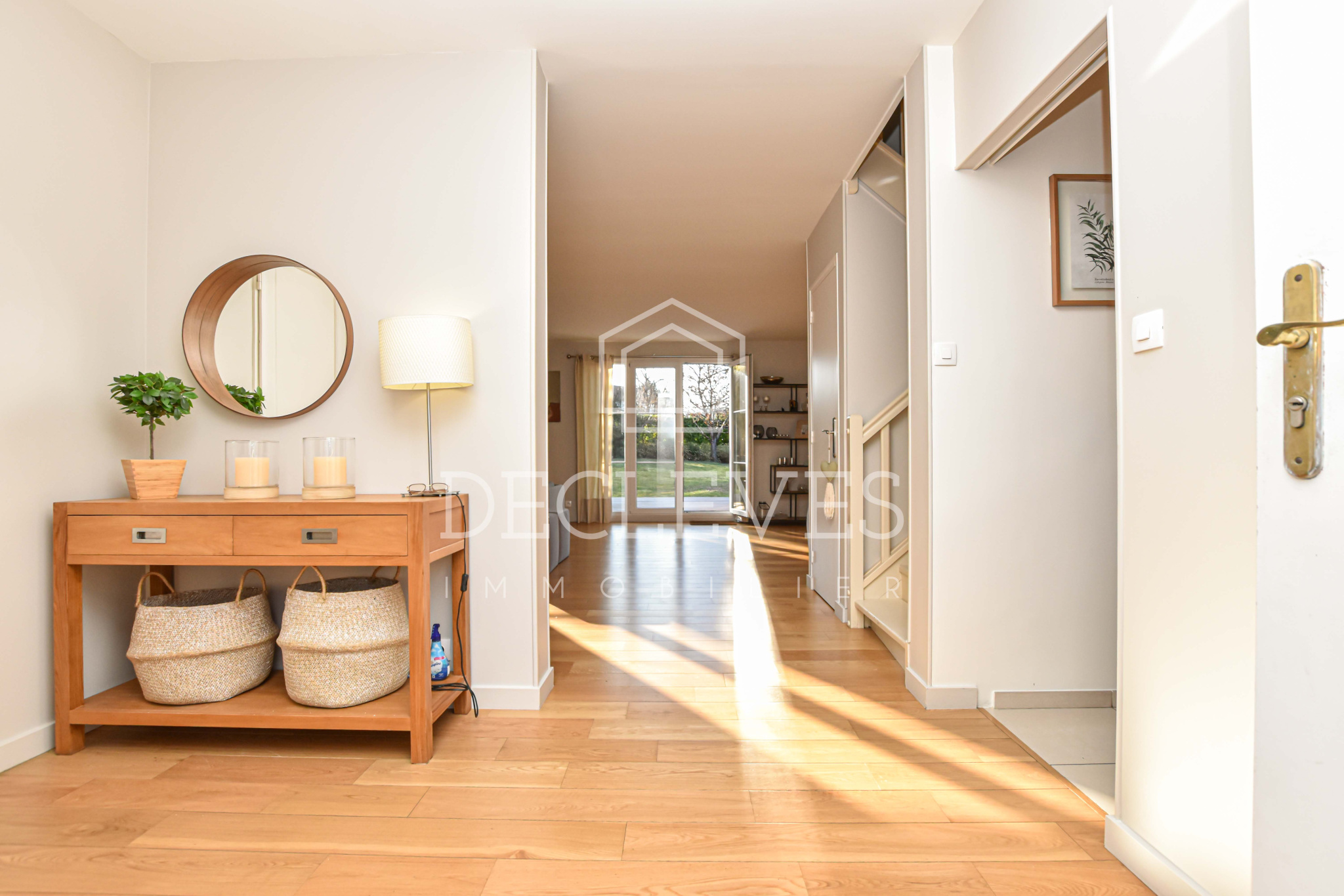 Dès l’entrée, vous serez séduit par une atmosphère chaleureuse et des prestations soignées. La pièce de vie principale, d’une surface généreuse de 53 m2, bénéficie d’une exposition sud/ouest, garantissant un ensoleillement optimal tout au long de la journée. Elle s’ouvre largement sur le jardin, idéal pour profiter des beaux jours en toute tranquillité.